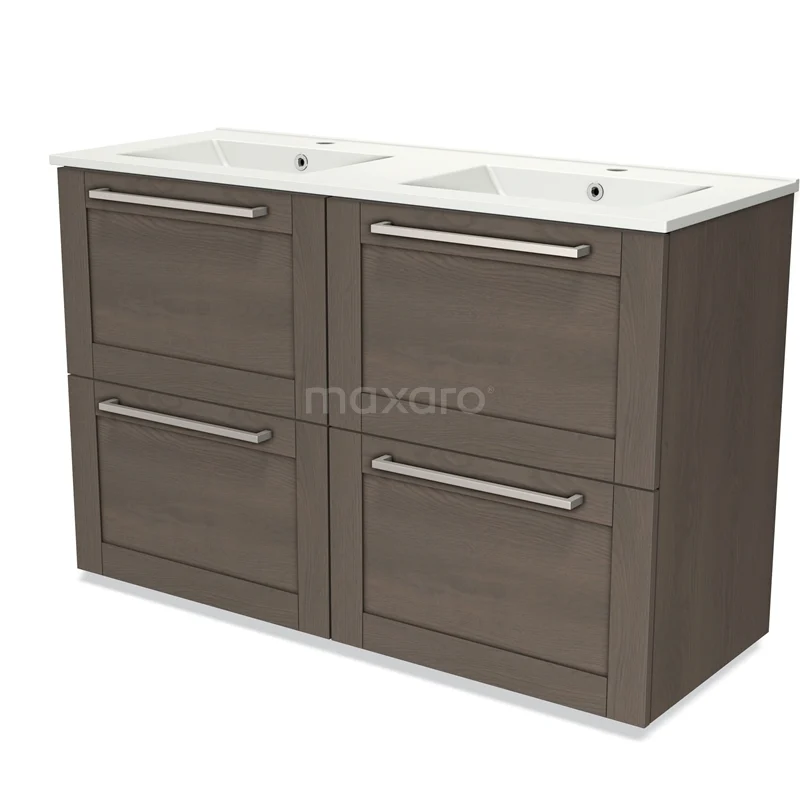 Modulo Bathroom furniture with sink | 120 cm Dark brown oak Frame front Ceramic 4 high drawers