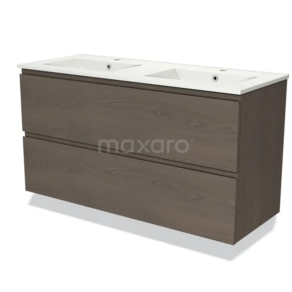 Modulo Bathroom furniture with sink | 120 cm Dark brown oak Handle-less front Ceramic 2 Stacked drawers