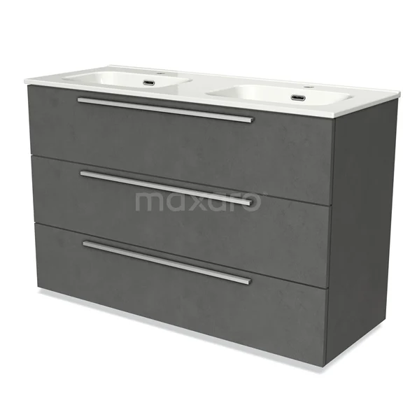 Modulo Bathroom furniture with sink | 120 cm Dark grey concrete Flat front Ceramic 3 drawers