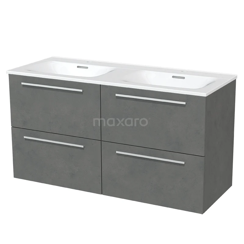 Modulo Bathroom furniture with sink | 120 cm Dark grey concrete Flat front Ceramic 4 drawers