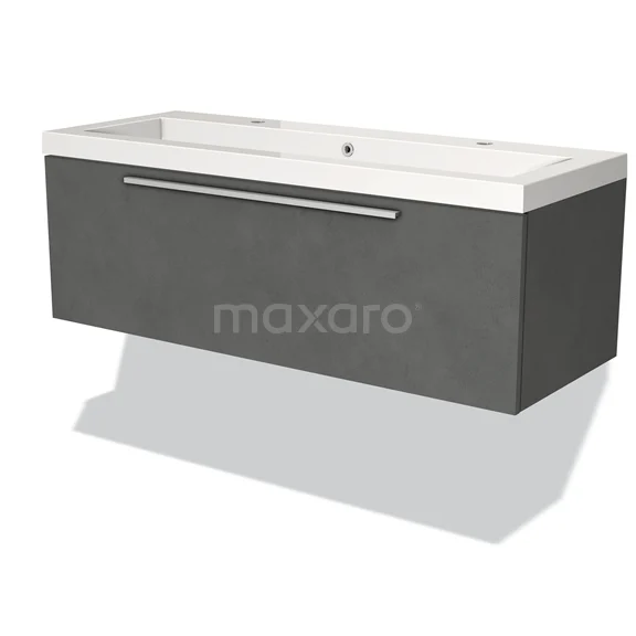 Modulo Bathroom furniture with sink | 120 cm Dark grey concrete Flat front Mineral marble 1 drawer