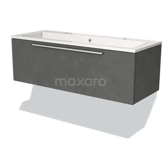 Modulo Bathroom furniture with sink | 120 cm Dark grey concrete Flat front Mineral marble 1 drawer