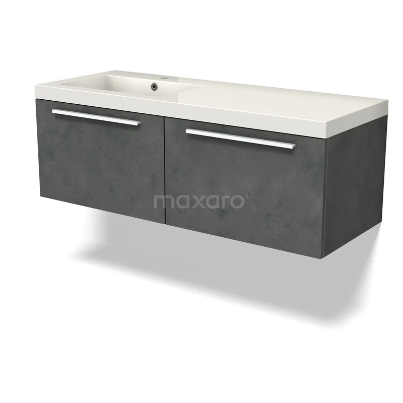 Modulo Bathroom furniture with sink | 120 cm Dark grey concrete Flat front Mineral marble 2 Side-by-side drawers