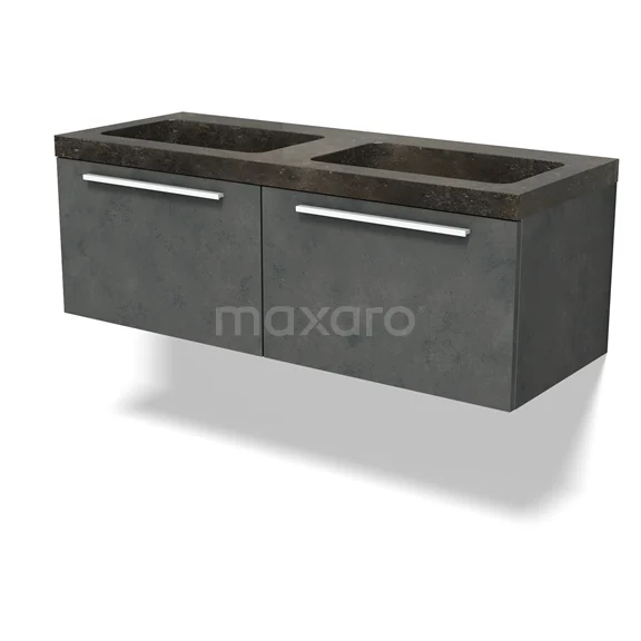 Modulo Bathroom furniture with sink | 120 cm Dark grey concrete Flat front Natural stone 2 Side-by-side drawers