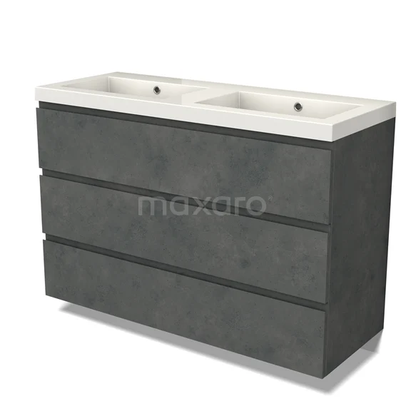 Modulo Bathroom furniture with sink | 120 cm Dark grey concrete Handle-less front Mineral marble 3 drawers