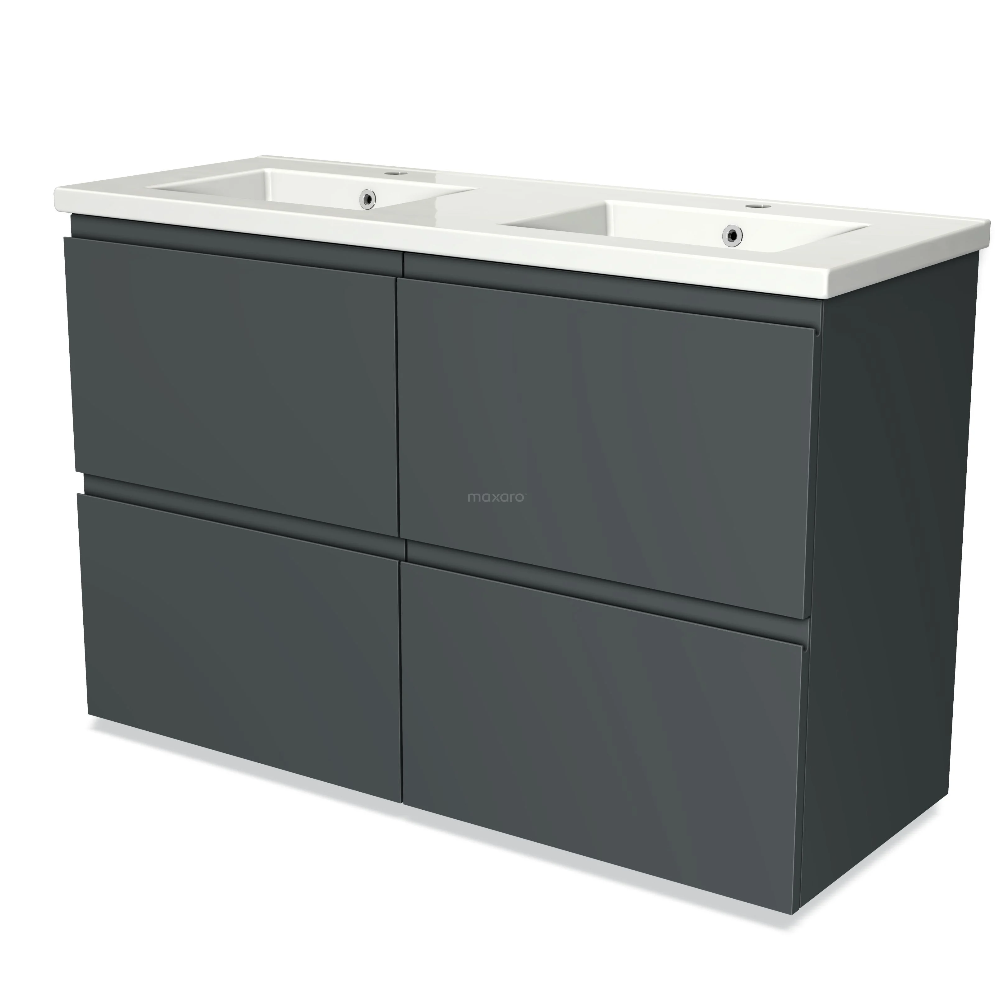 Modulo Bathroom furniture with sink | 120 cm Dark grey Handle-less front Ceramic 4 high drawers