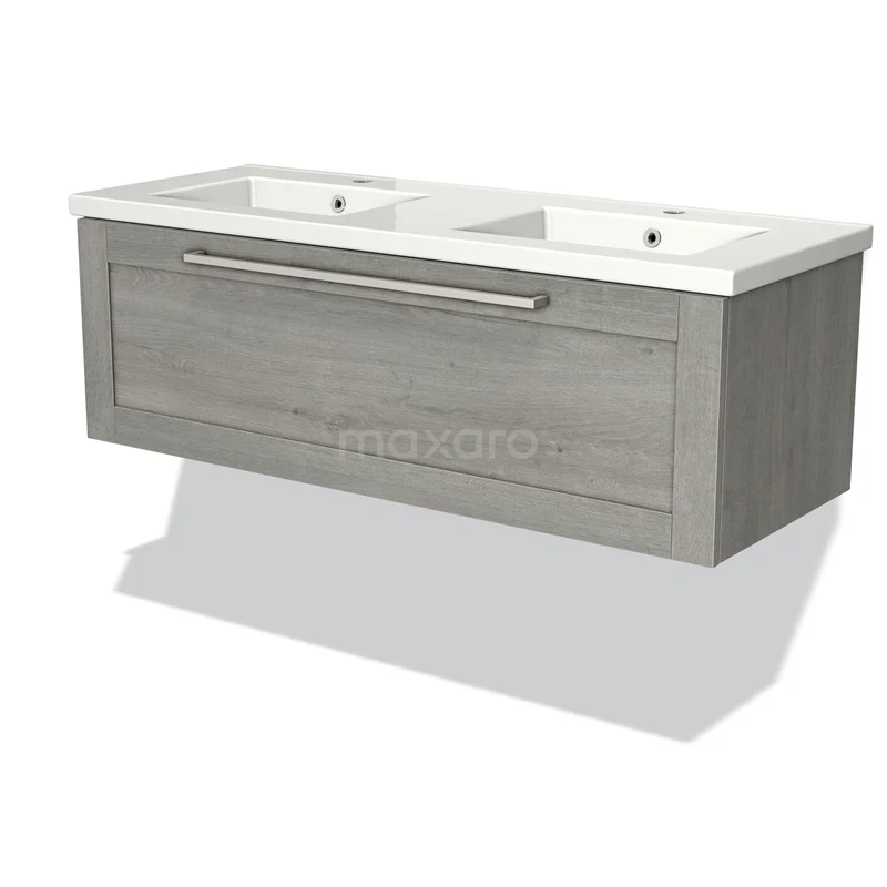 Modulo Bathroom furniture with sink | 120 cm Grey oak Bordered front Ceramic 1 drawer