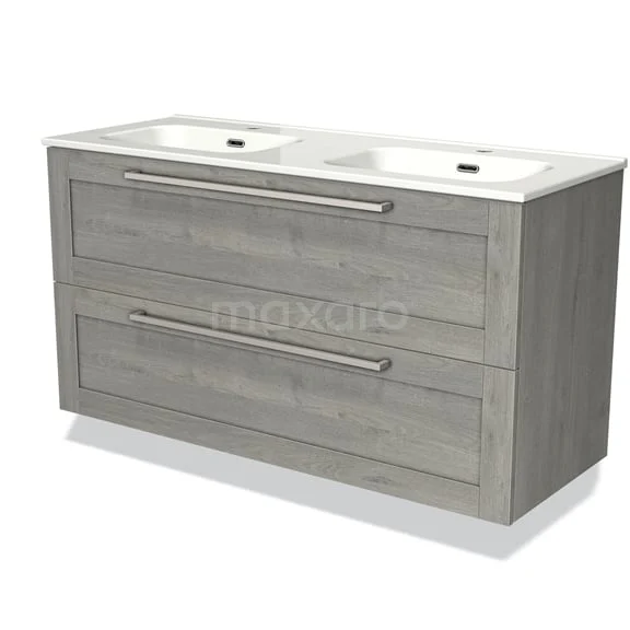 Modulo Bathroom furniture with sink | 120 cm Grey oak Bordered front Ceramic 2 Stacked drawers