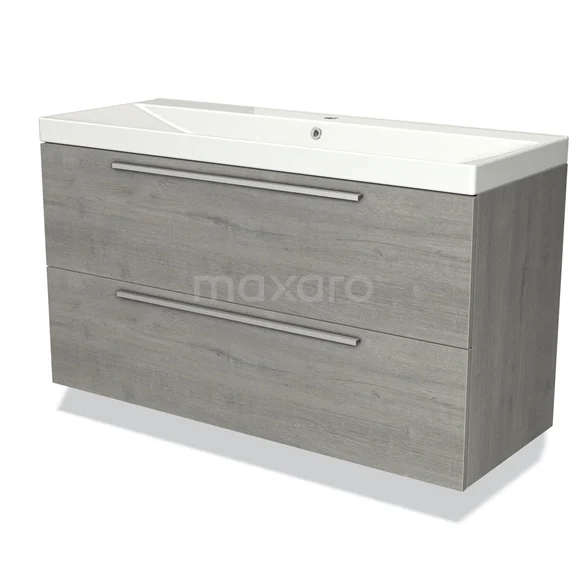 Modulo Bathroom furniture with sink | 120 cm Grey oak Flat front Ceramic 2 Stacked drawers
