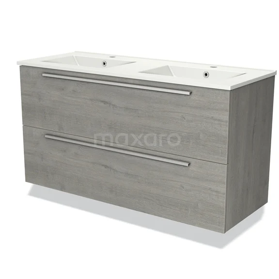 Modulo Bathroom furniture with sink | 120 cm Grey oak Flat front Ceramic 2 Stacked drawers