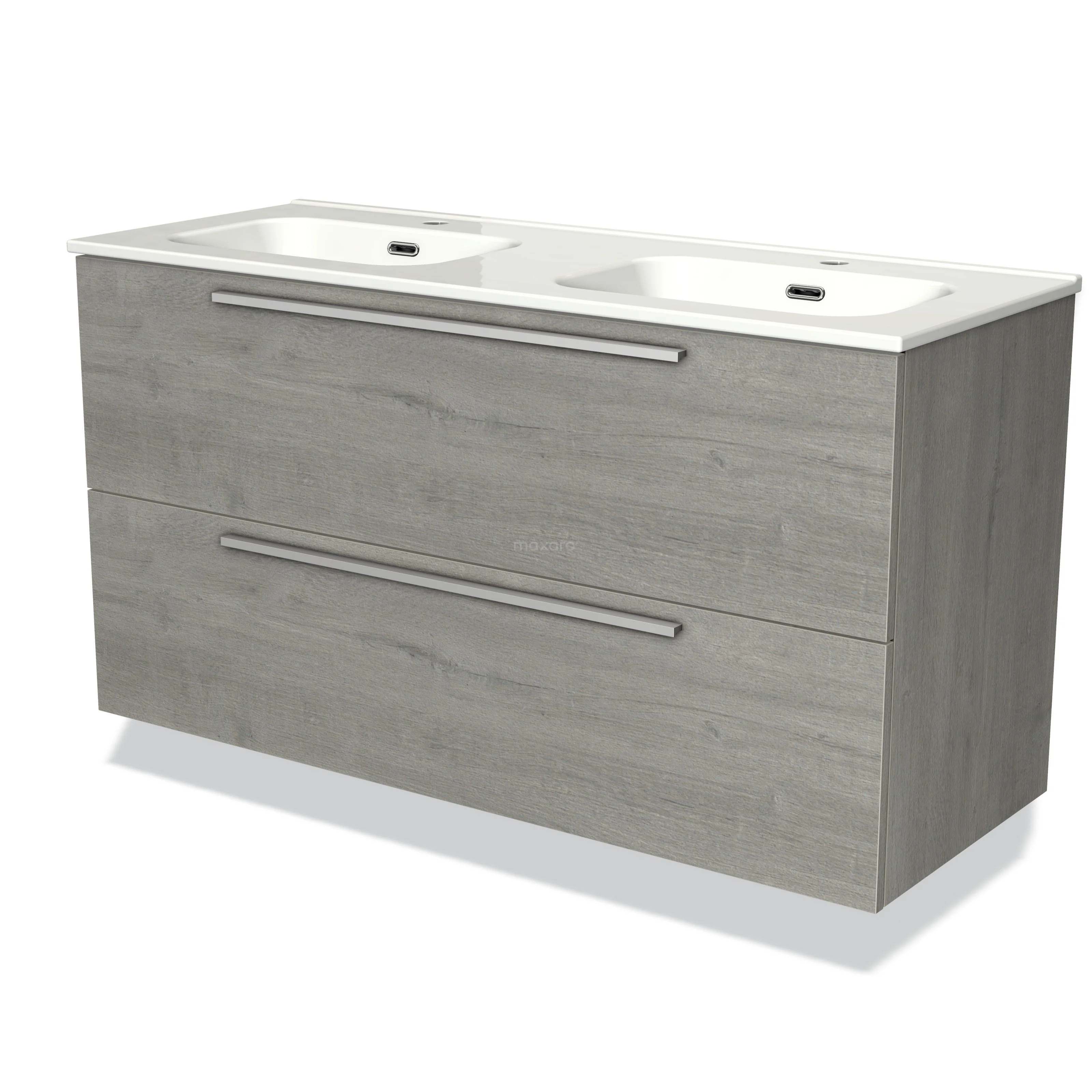 Modulo Bathroom furniture with sink | 120 cm Grey oak Flat front Ceramic 2 Stacked drawers
