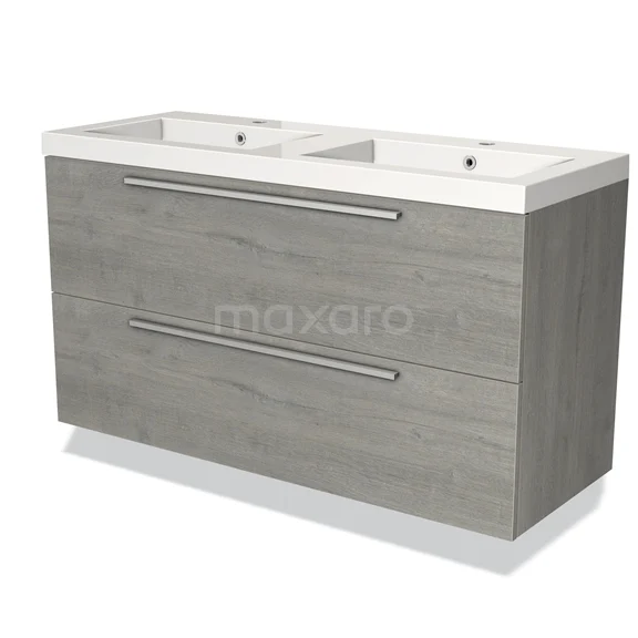 Modulo Bathroom furniture with sink | 120 cm Grey oak Flat front Mineral marble 2 Stacked drawers