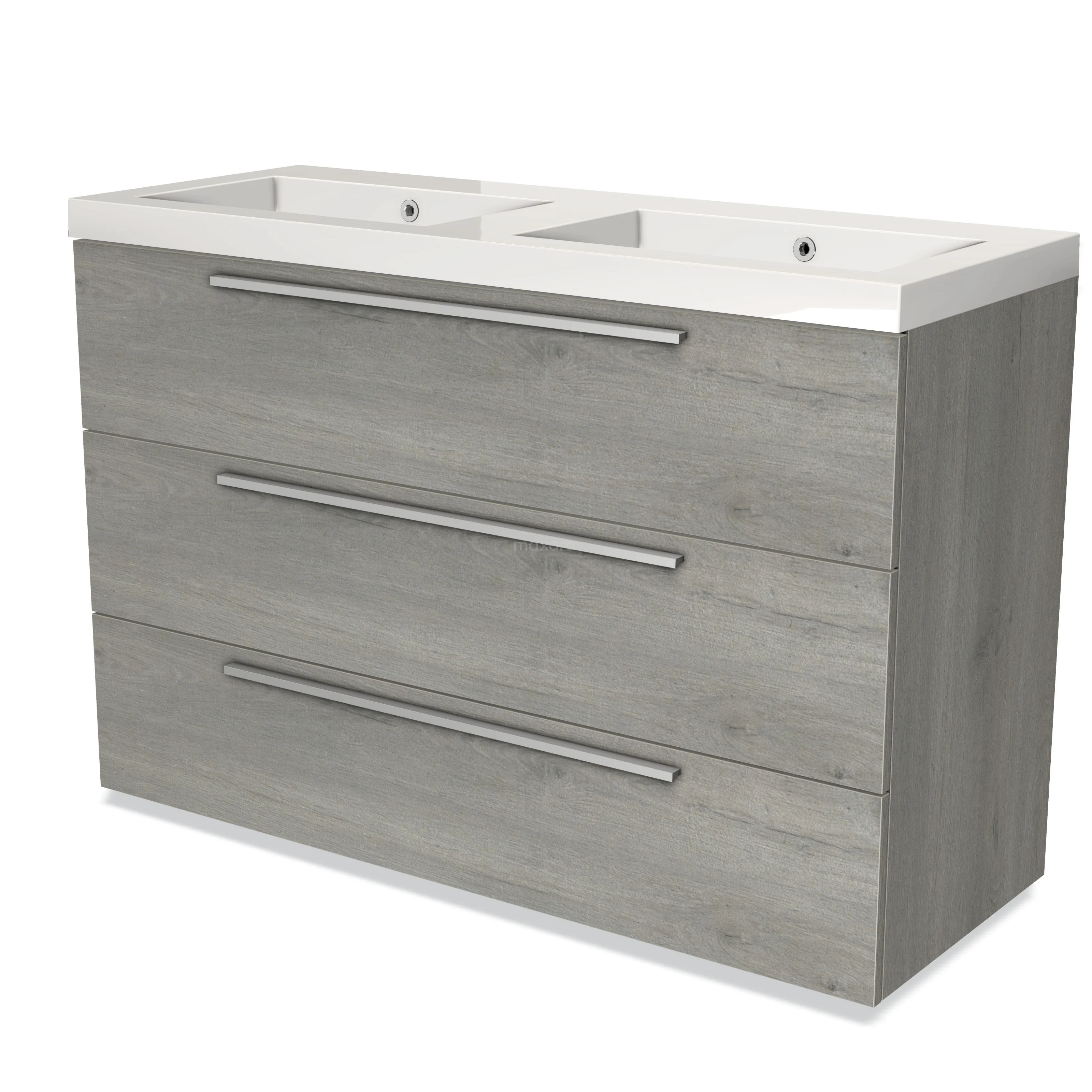 Modulo Bathroom furniture with sink | 120 cm Grey oak Flat front Mineral marble 3 drawers
