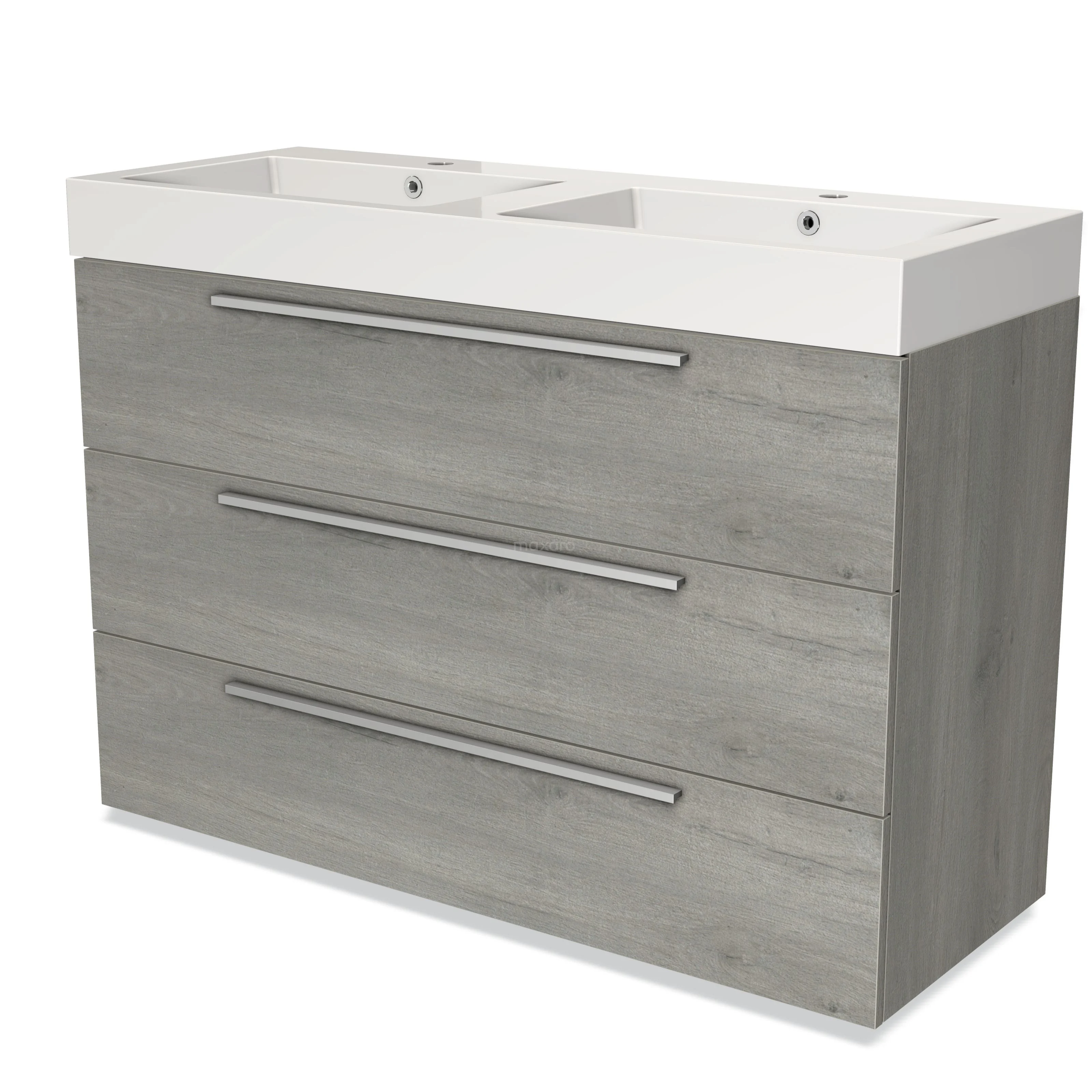 Stylish design The stylish design makes this bathroom unit the eye-catcher of your bathroom. The base cabinet features a flat front and has a Grey oak finish. This beautiful oak look is an attractive addition to your bathroom interior. In addition, the flat front provides a timeless touch. NO TEXT FOUND.