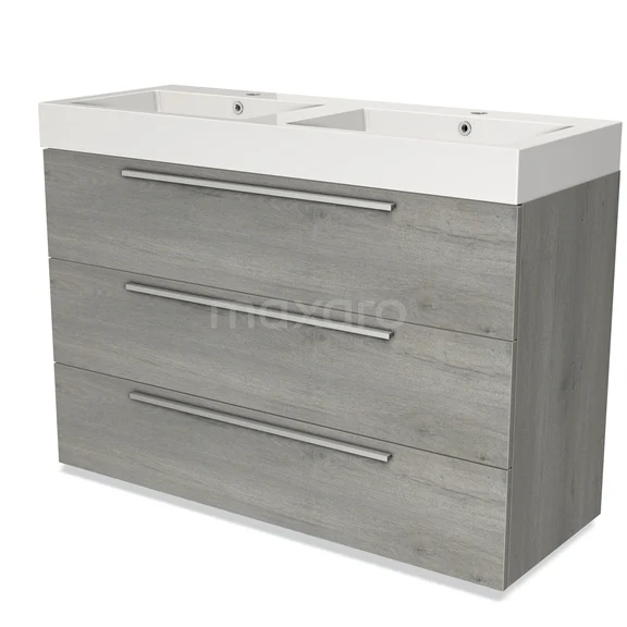 Modulo Bathroom furniture with sink | 120 cm Grey oak Flat front Mineral marble 3 drawers