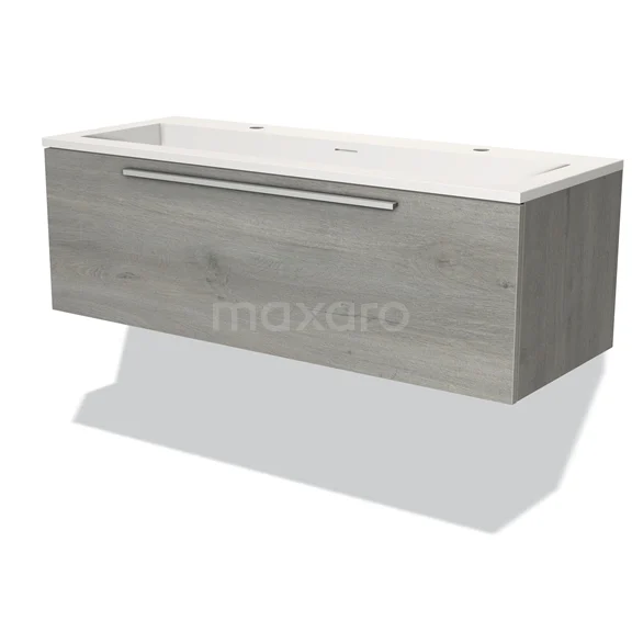 Modulo Bathroom furniture with sink | 120 cm Grey oak Flat front Solid surface 1 drawer
