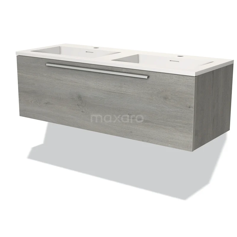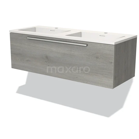 Modulo Bathroom furniture with sink | 120 cm Grey oak Flat front Solid surface 1 drawer