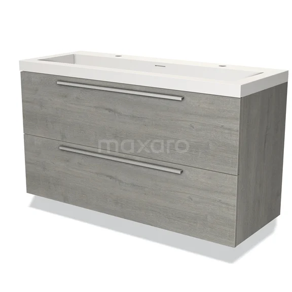 Modulo Bathroom furniture with sink | 120 cm Grey oak Flat front Solid surface 2 Stacked drawers