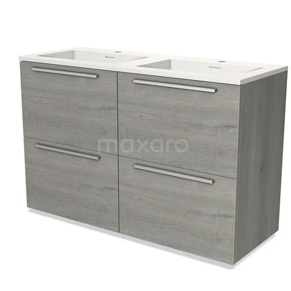 Modulo Bathroom furniture with sink | 120 cm Grey oak Flat front Solid surface 4 high drawers