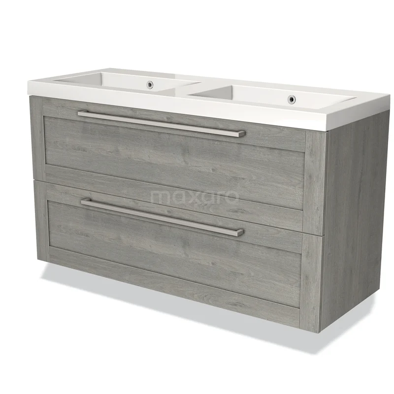 Modulo Bathroom furniture with sink | 120 cm Grey oak Frame front Mineral marble 2 Stacked drawers