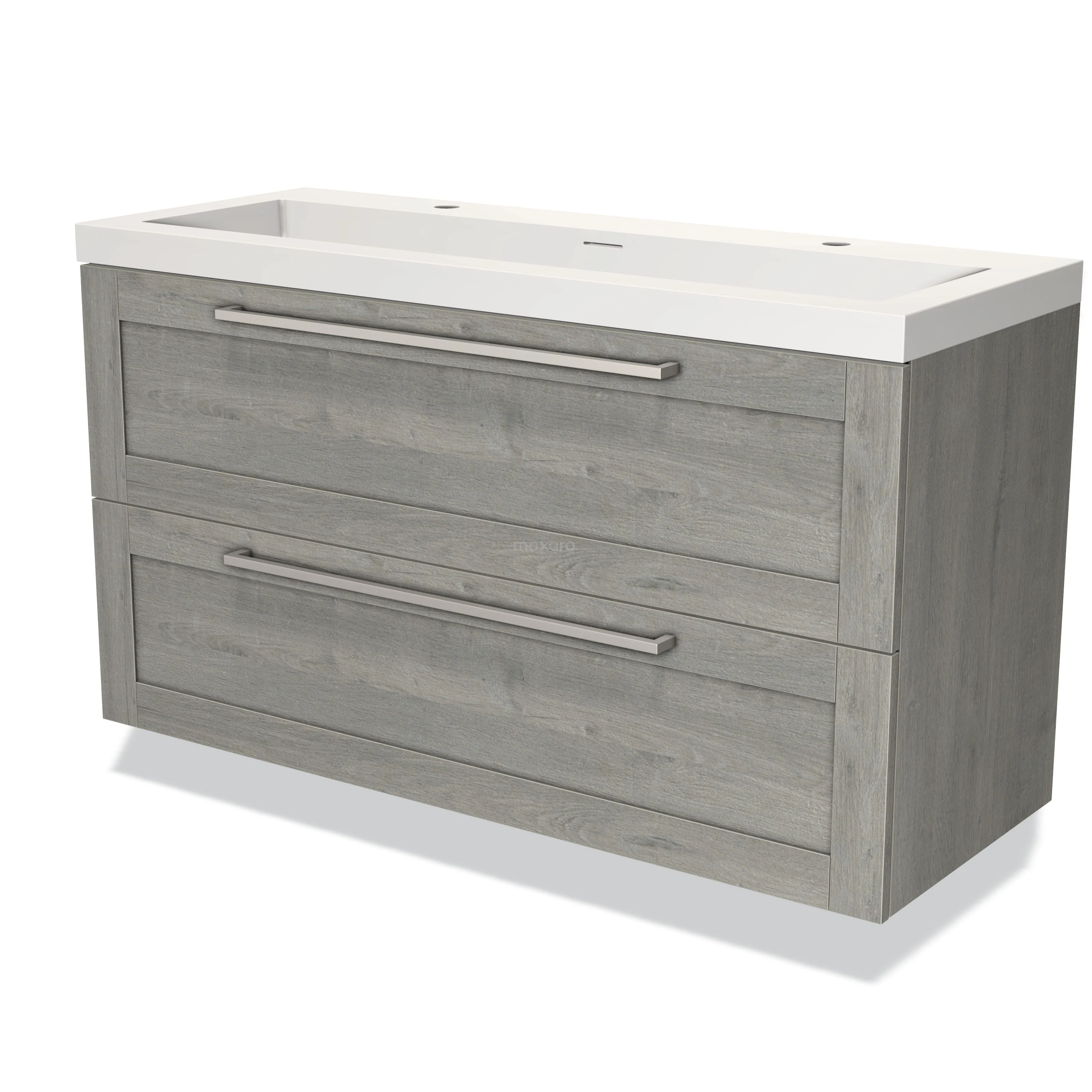 Modulo Bathroom furniture with sink | 120 cm Grey oak Frame front Solid surface 2 Stacked drawers