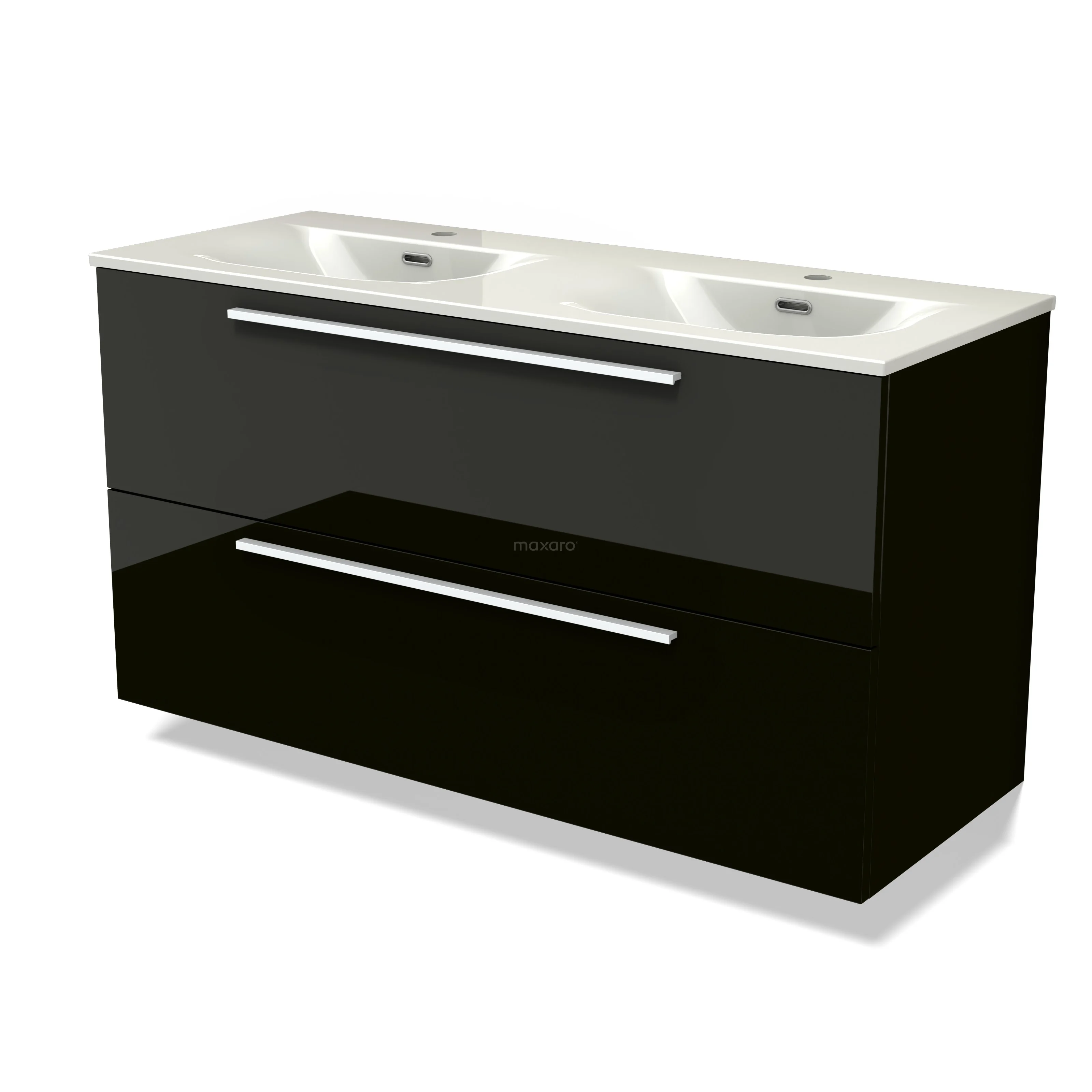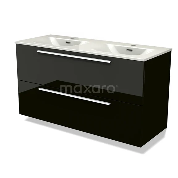 Modulo Bathroom furniture with sink | 120 cm High-gloss black Flat front Ceramic 2 Stacked drawers