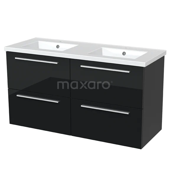 Modulo Bathroom furniture with sink | 120 cm High-gloss black Flat front Ceramic 4 drawers