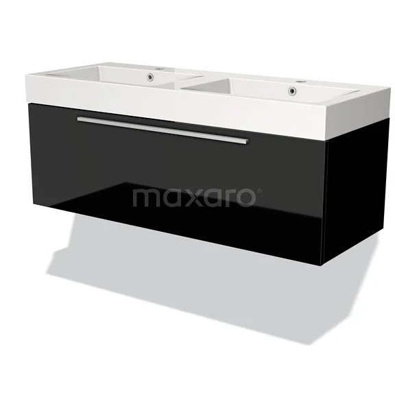 Modulo Bathroom furniture with sink | 120 cm High-gloss black Flat front Mineral marble 1 drawer