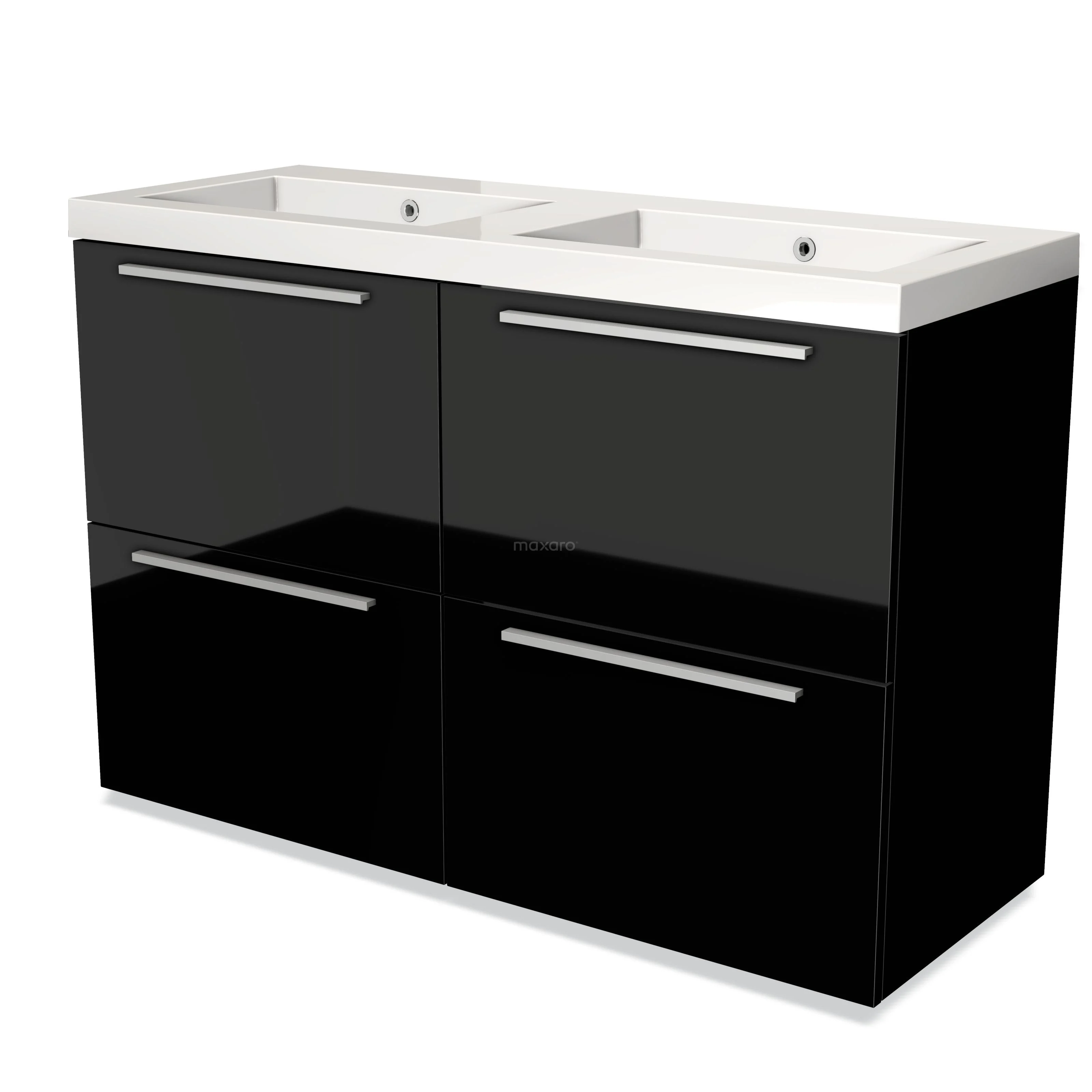 Modulo Bathroom furniture with sink | 120 cm High-gloss black Flat front Mineral marble 4 high drawers