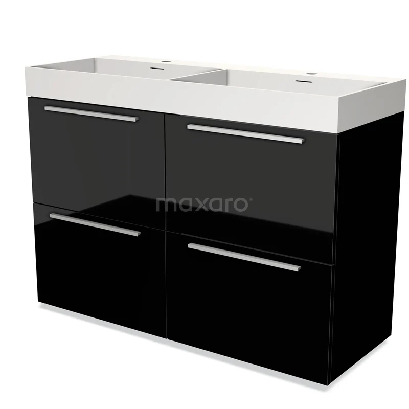 Modulo Bathroom furniture with sink | 120 cm High-gloss black Flat front Solid surface 4 high drawers