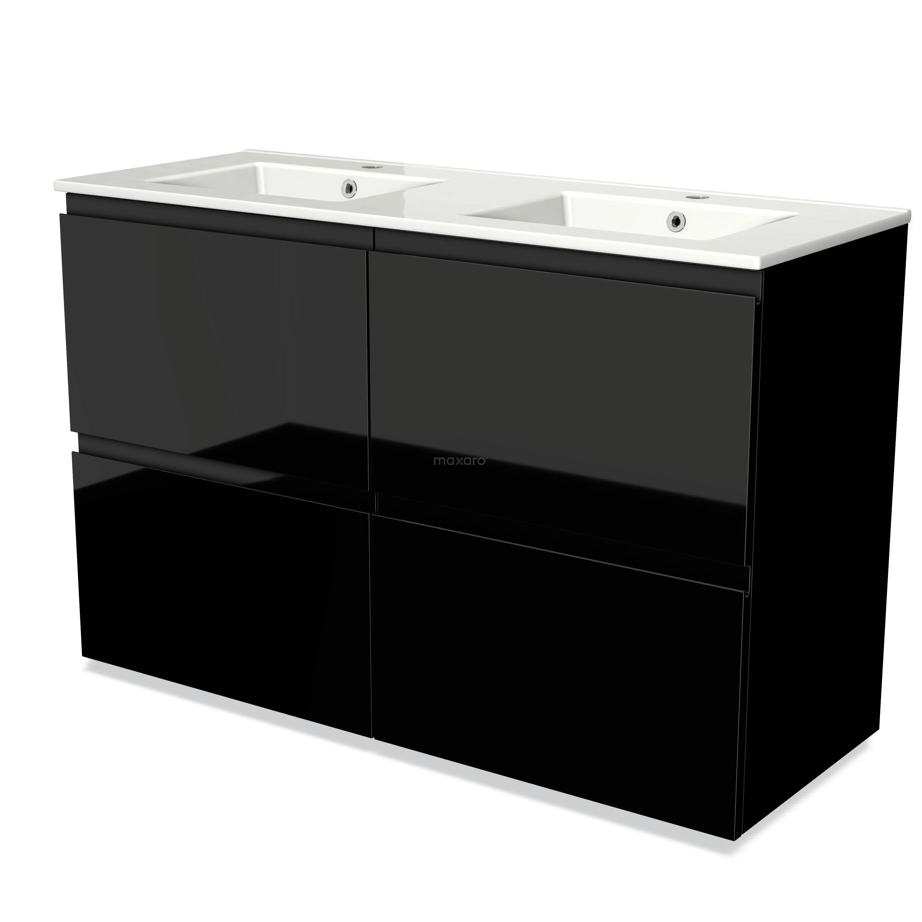 Modulo Bathroom furniture with sink | 120 cm High-gloss black Handle-less front Ceramic 4 high drawers