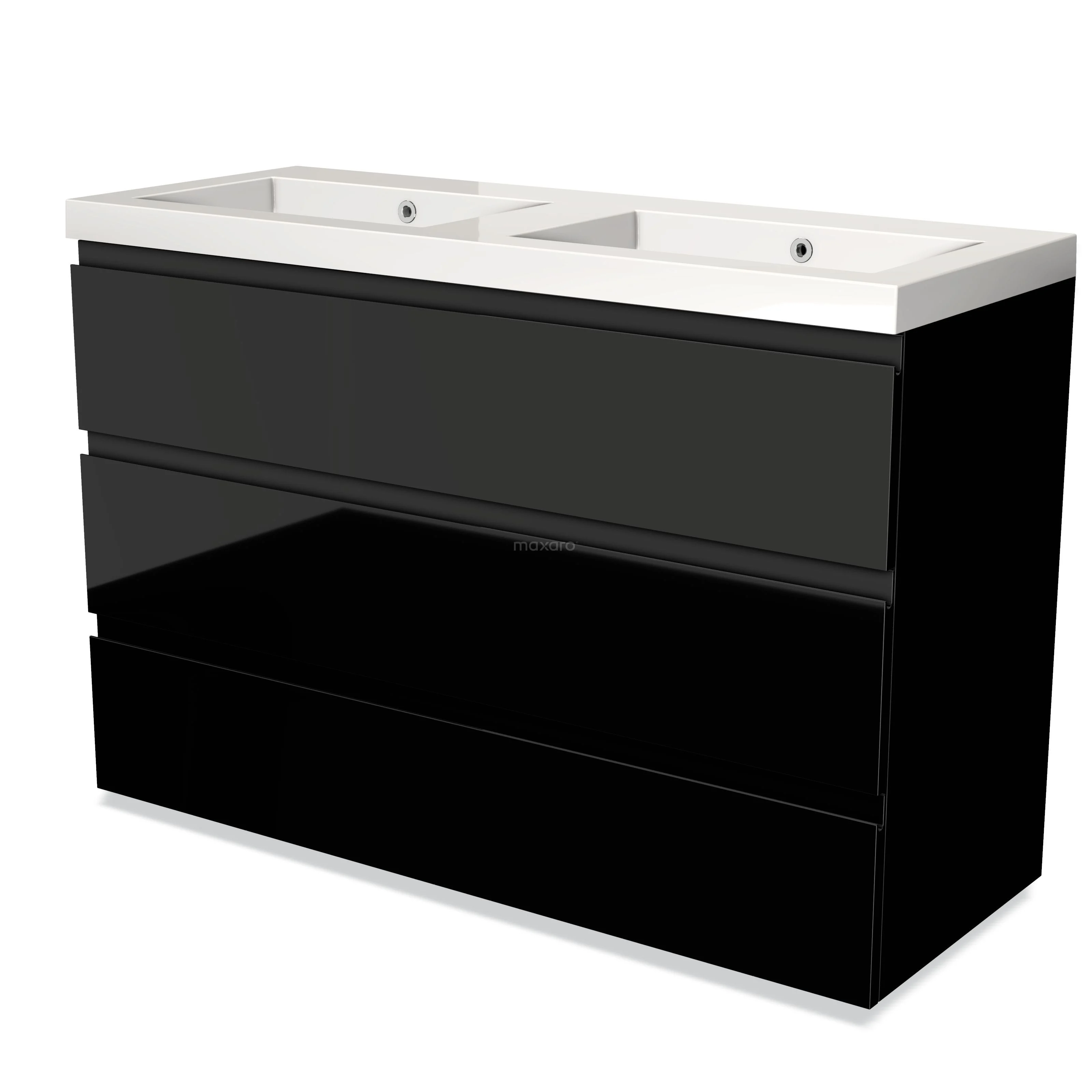 Modulo Bathroom furniture with sink | 120 cm High-gloss black Handle-less front Mineral marble 3 drawers