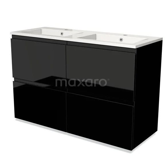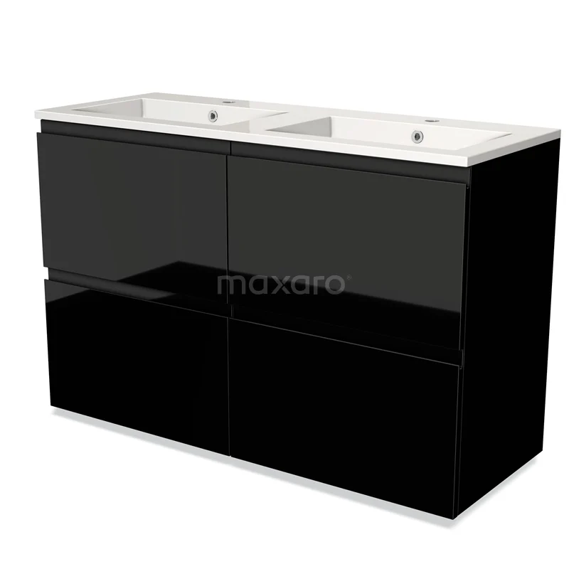 Modulo Bathroom furniture with sink | 120 cm High-gloss black Handle-less front Mineral marble 4 high drawers