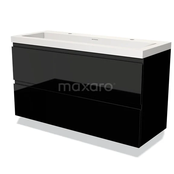 Modulo Bathroom furniture with sink | 120 cm High-gloss black Handle-less front Solid surface 2 Stacked drawers