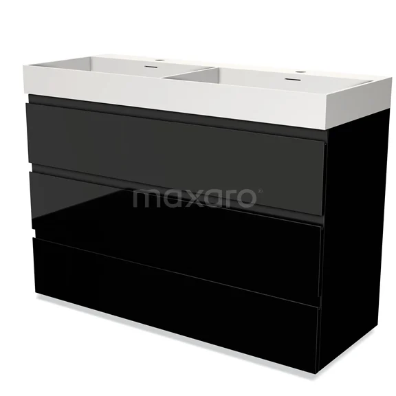 Modulo Bathroom furniture with sink | 120 cm High-gloss black Handle-less front Solid surface 3 drawers