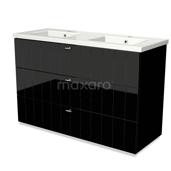 Modulo Bathroom furniture with sink | 120 cm High-gloss black Slat front Ceramic 3 drawers