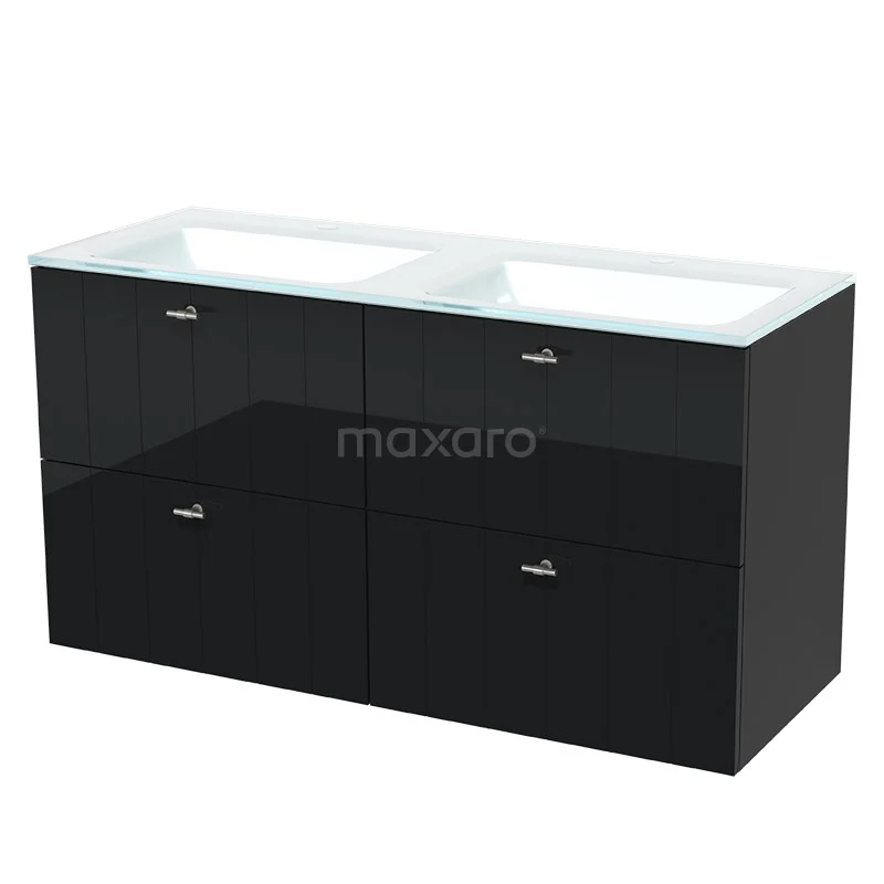 Modulo Bathroom furniture with sink | 120 cm High-gloss black Slat front Glass 4 drawers