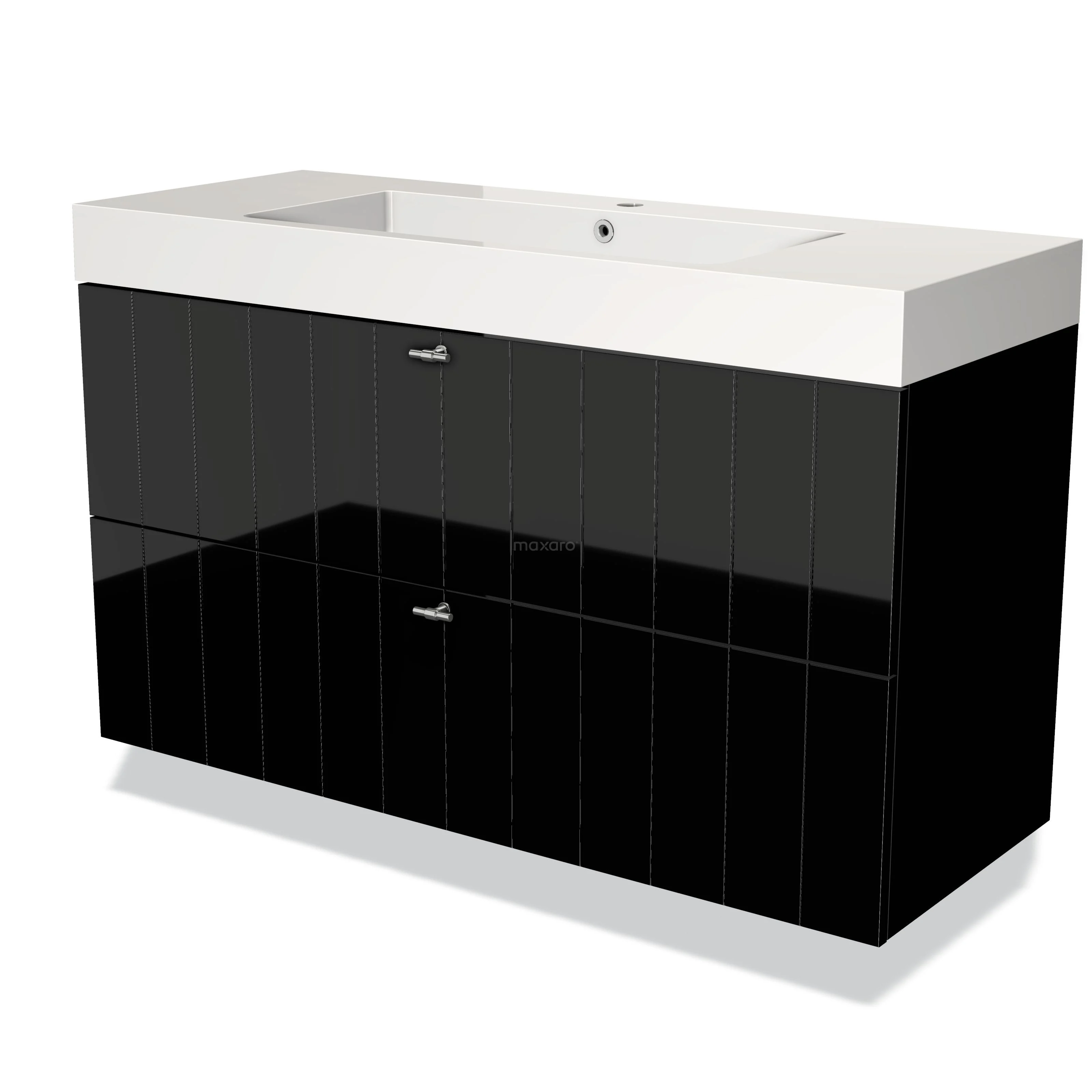 Modulo Bathroom furniture with sink | 120 cm High-gloss black Slat front Mineral marble 2 Stacked drawers