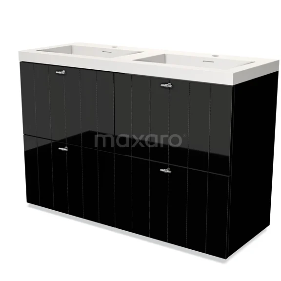 Modulo Bathroom furniture with sink | 120 cm High-gloss black Slat front Solid surface 4 high drawers