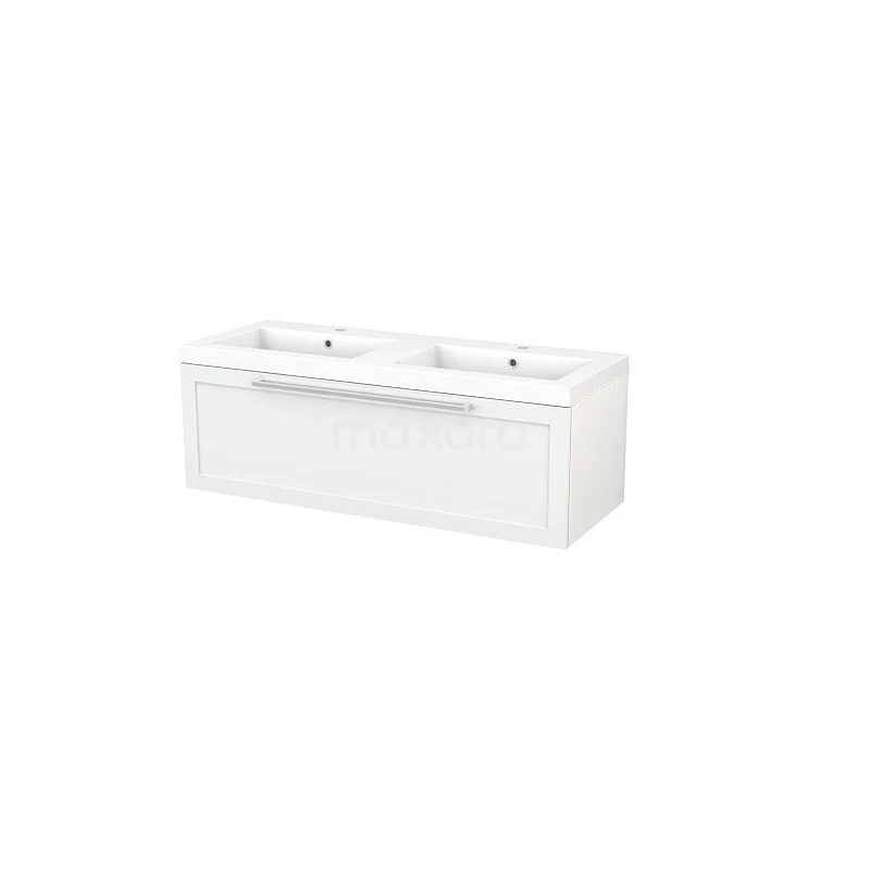 Modulo+ Bathroom furniture with sink | 120 cm High-gloss white Bordered front Mineral marble 1 drawer