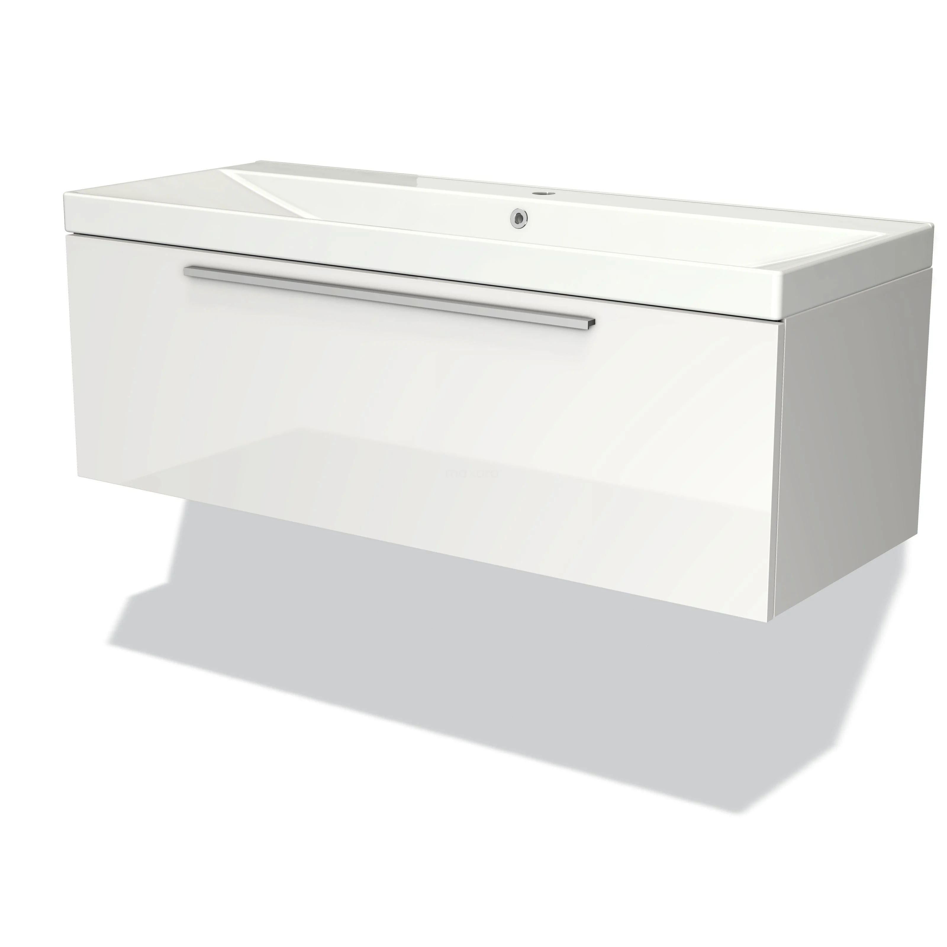 Modulo Bathroom furniture with sink | 120 cm High-gloss white Flat front Ceramic 1 drawer