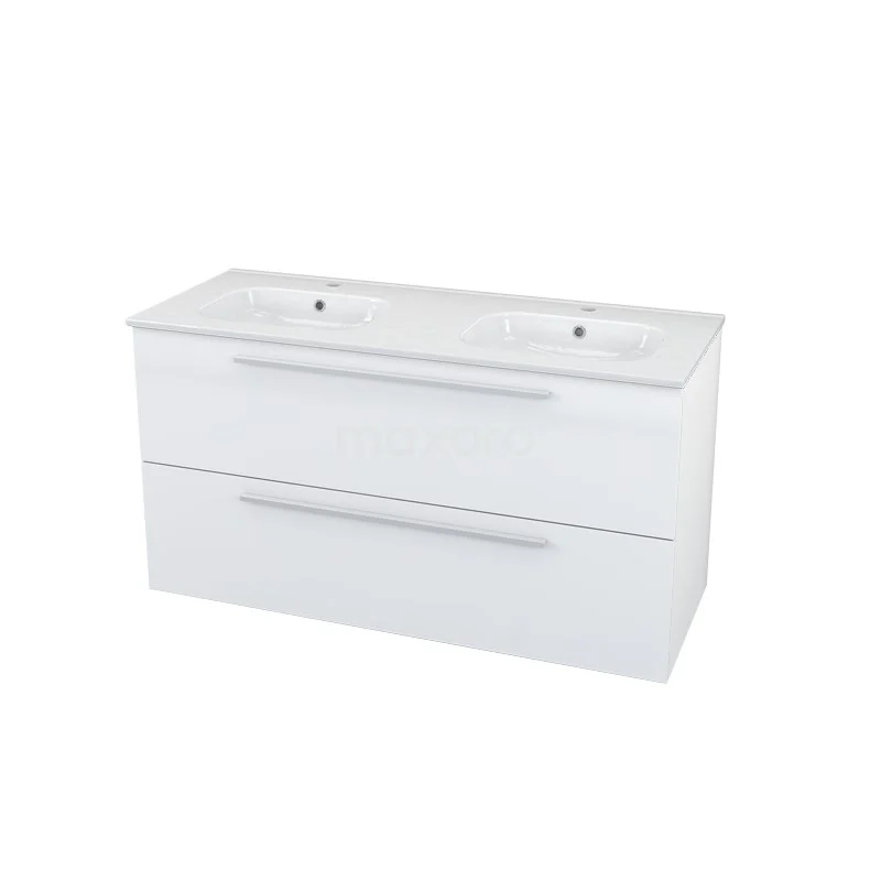 Modulo+ Bathroom furniture with sink | 120 cm High-gloss white Flat front Ceramic 2 Stacked drawers