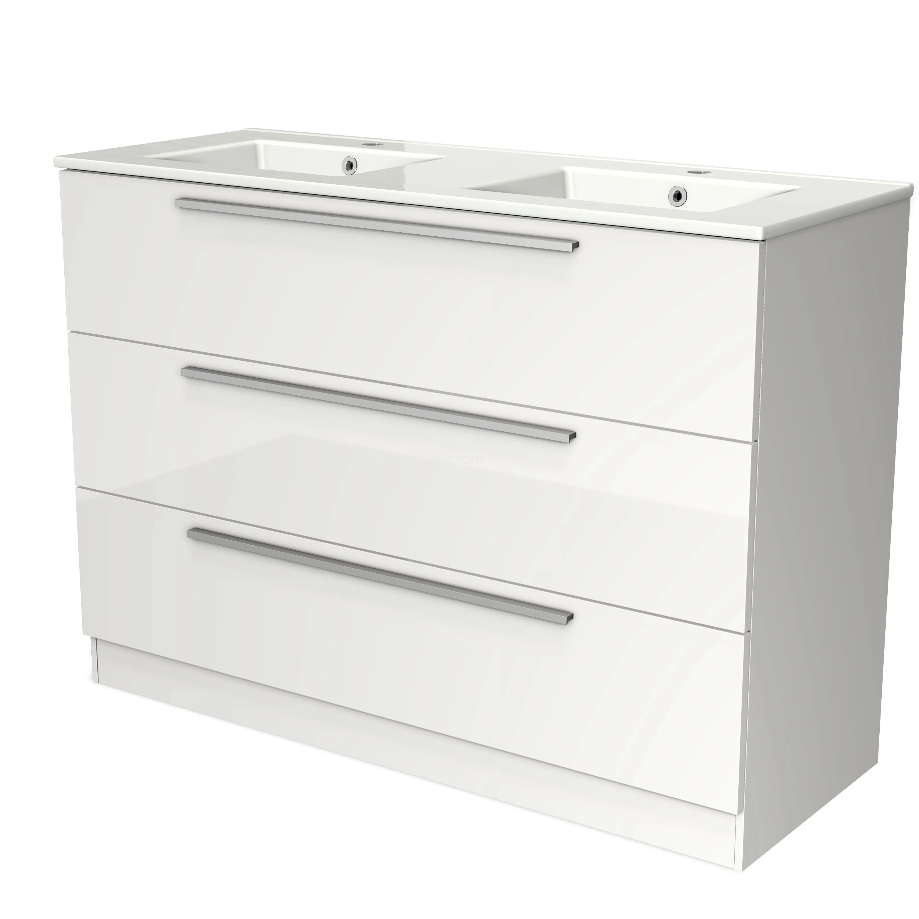 Modulo Bathroom furniture with sink | 120 cm High-gloss white Flat front Ceramic 3 standing drawers