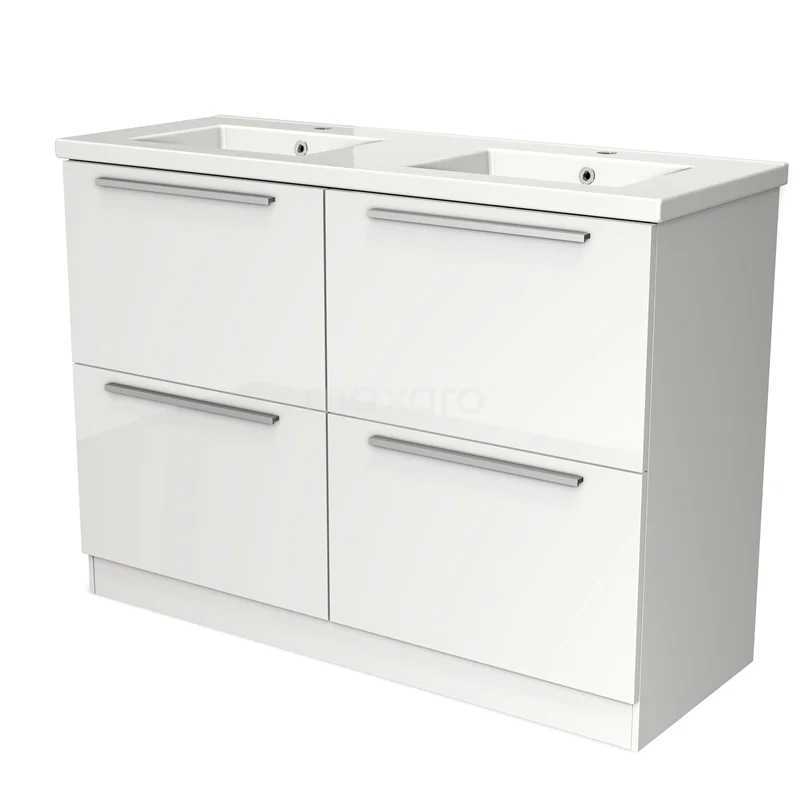 Modulo Bathroom furniture with sink | 120 cm High-gloss white Flat front Ceramic 4 standing high drawers
