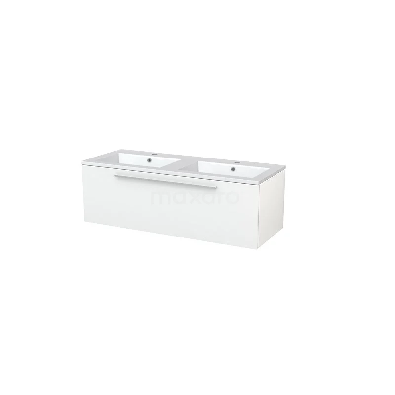 Modulo+ Bathroom furniture with sink | 120 cm High-gloss white Flat front Mineral marble 1 drawer