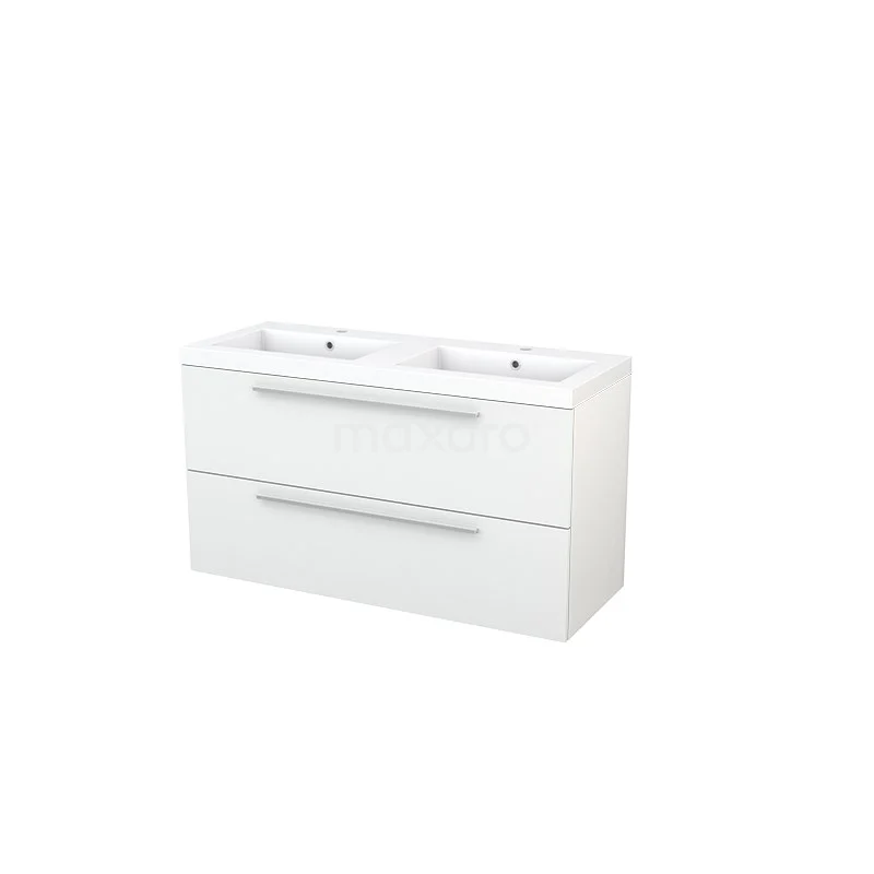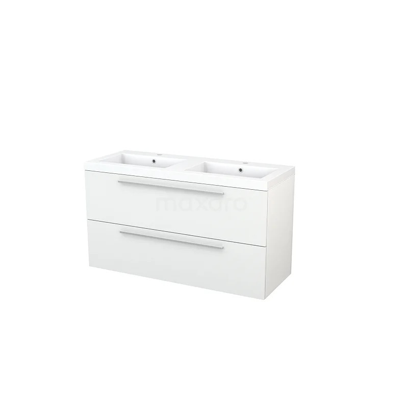 Modulo+ Bathroom furniture with sink | 120 cm High-gloss white Flat front Mineral marble 2 Stacked drawers