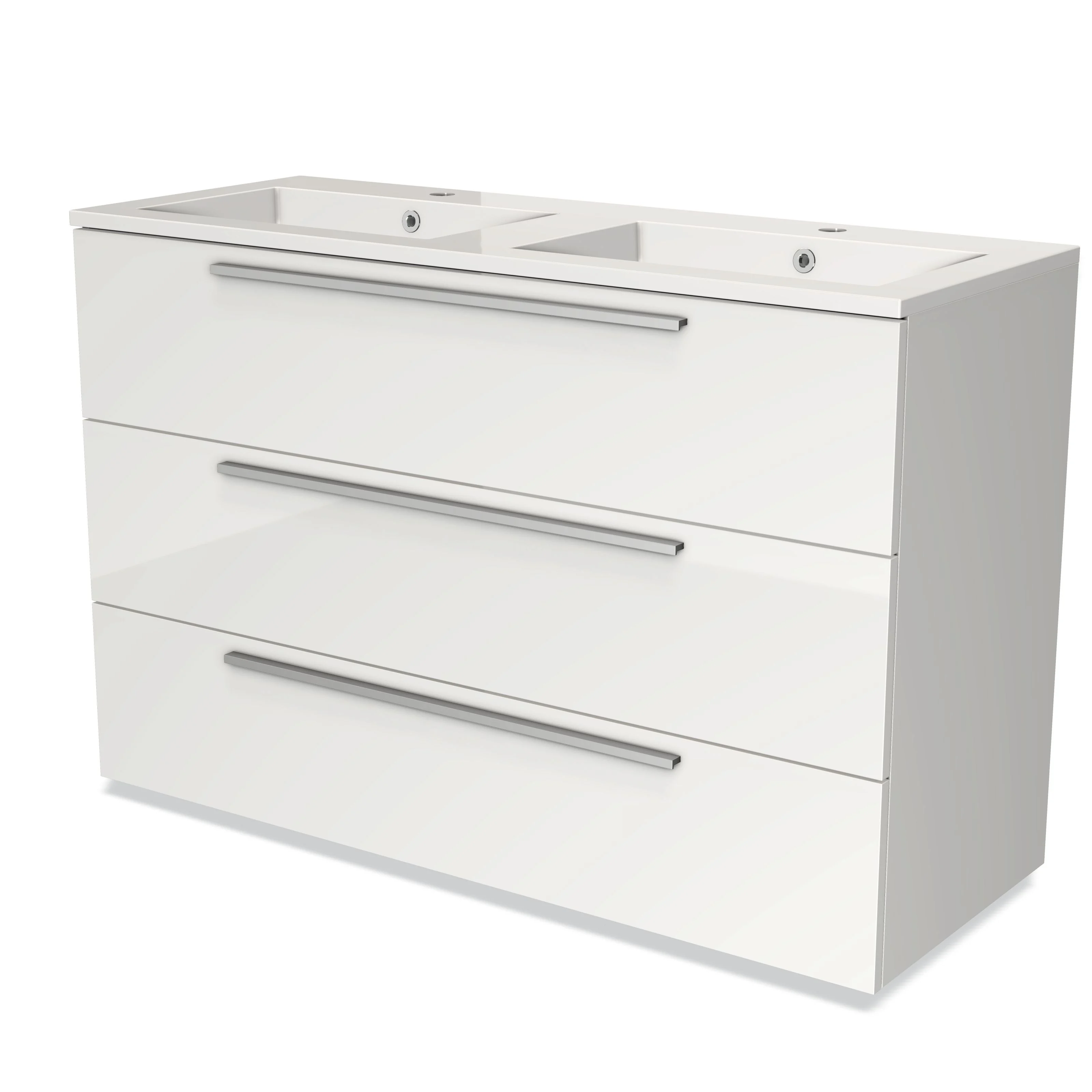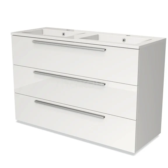 Modulo Bathroom furniture with sink | 120 cm High-gloss white Flat front Mineral marble 3 drawers