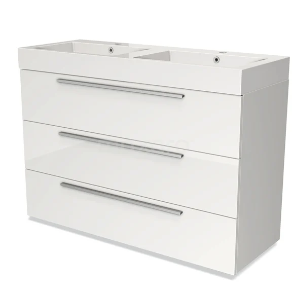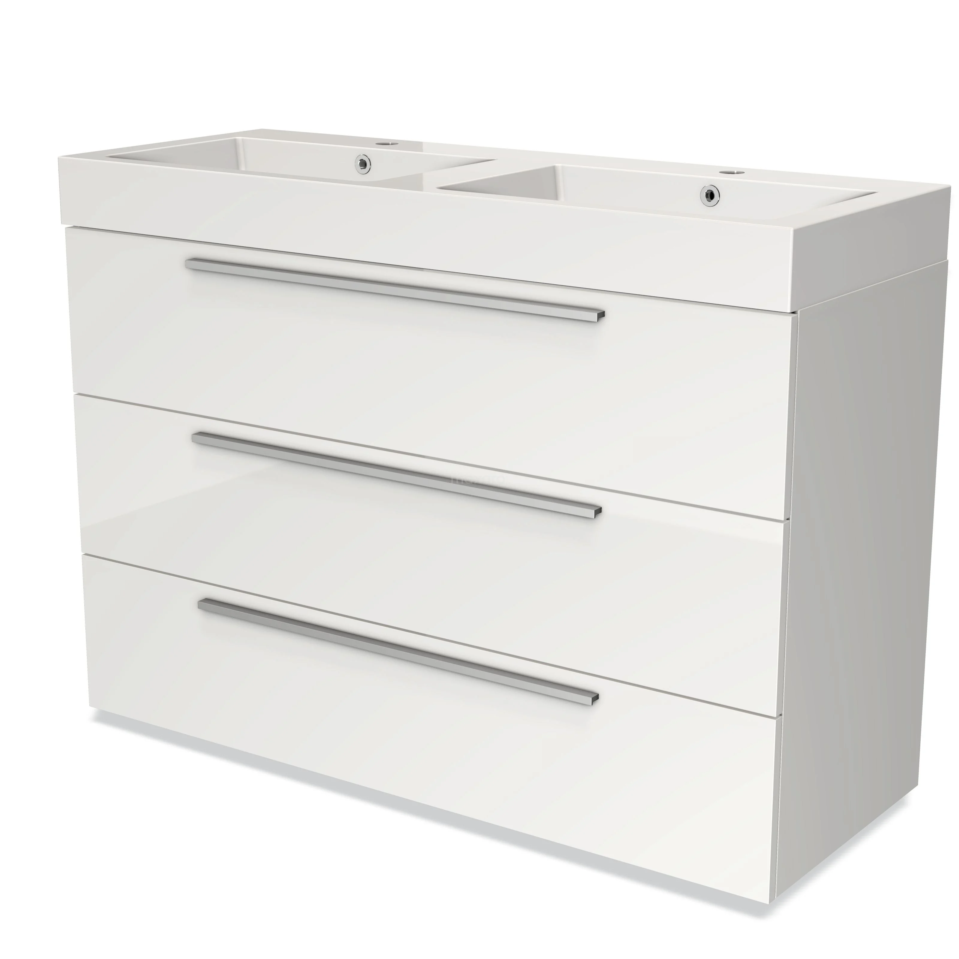 Modulo Bathroom furniture with sink | 120 cm High-gloss white Flat front Mineral marble 3 drawers
