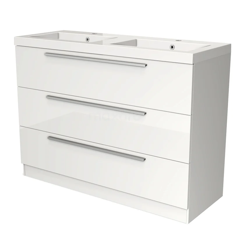 Modulo Bathroom furniture with sink | 120 cm High-gloss white Flat front Mineral marble 3 standing drawers