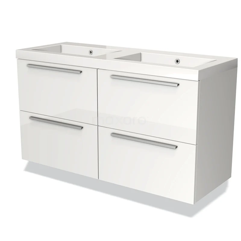 Modulo Bathroom furniture with sink | 120 cm High-gloss white Flat front Mineral marble 4 drawers